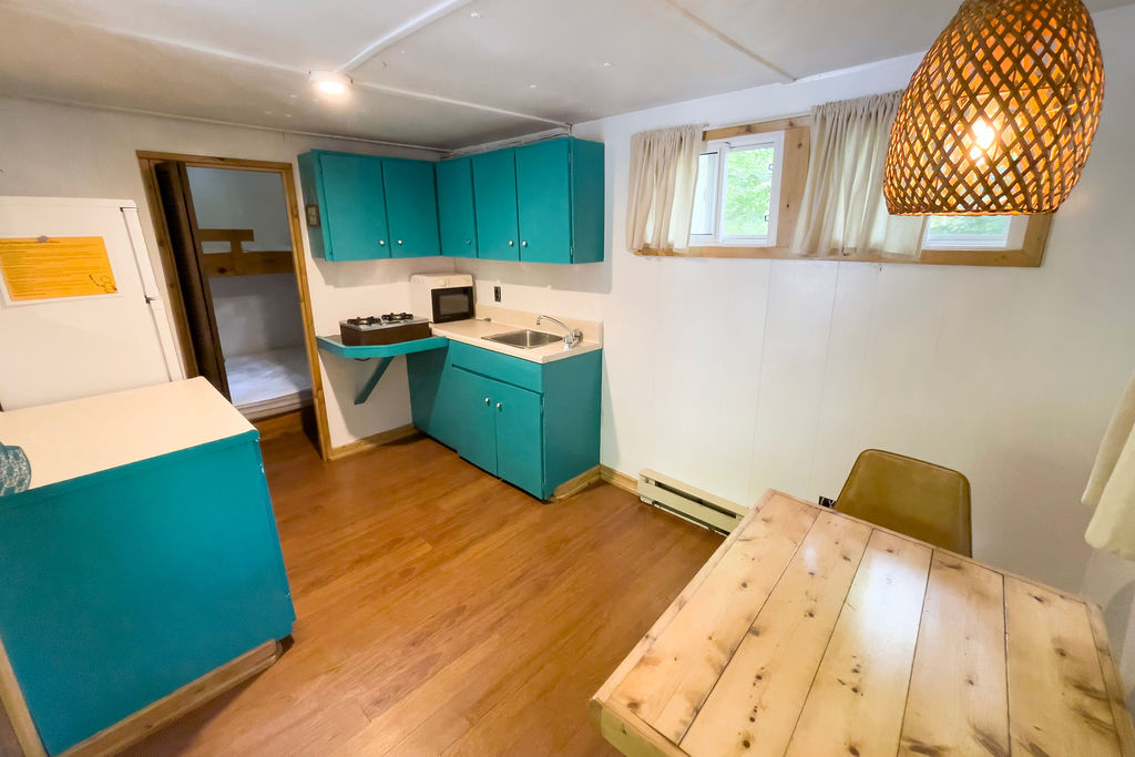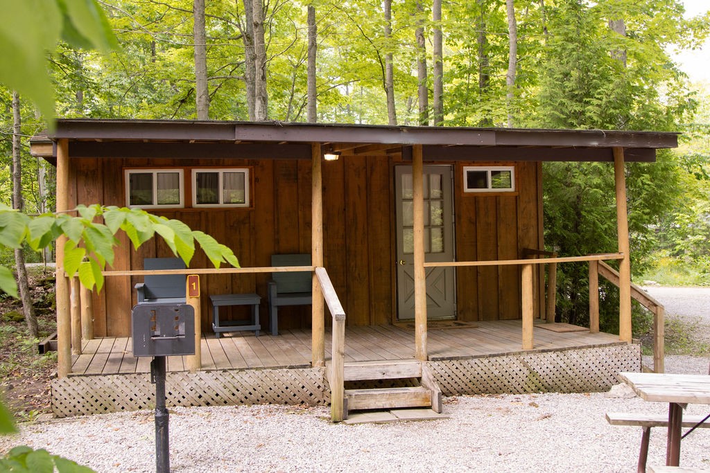 Enjoy a vacation in our camping cabin, located in the campground's beautiful hardwood forest. This basic cabin offers a small sink, fridge, gas cook stove, outdoor cooking grill, fire pit and picnic table. Centralized washrooms and laundromat are close by.